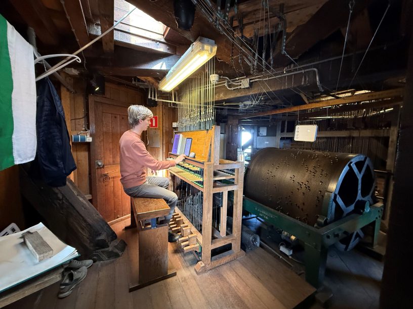 GRONINGEN – Elke dinsdagochtend om half twaalf klinkt het klokkenspel van de Martinitoren over de Grote Markt. Beiaardier Bob van der Linde bespeelt dan het carillon, het klokkenspel hoog in de toren, met dansende handen en voeten over de klavieren (bespeelbaar muziekinstrument, bestaande uit een of meer series klokken). Iedere dinsdag speelt Bob een uur lang op het carillon, samen met collega Maurits Bunt, die op vrijdag te horen is. Zij zetten een traditie voort die ál 500 jaar bestaat.