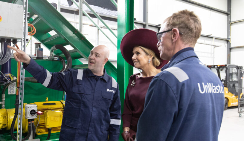 GRONINGEN – Koningin Máxima heeft vandaag in Farmsum de nieuwe fabriek UPPACT geopend. UPPACT verwerkt kunststof- en textielafval tot bouwmaterialen zoals palen en planken. Voor de bouw van de fabriek ontving UPPACT ruim € 1.3 miljoen uit het Europese subsidieprogramma Just Transition Fund (JTF).
