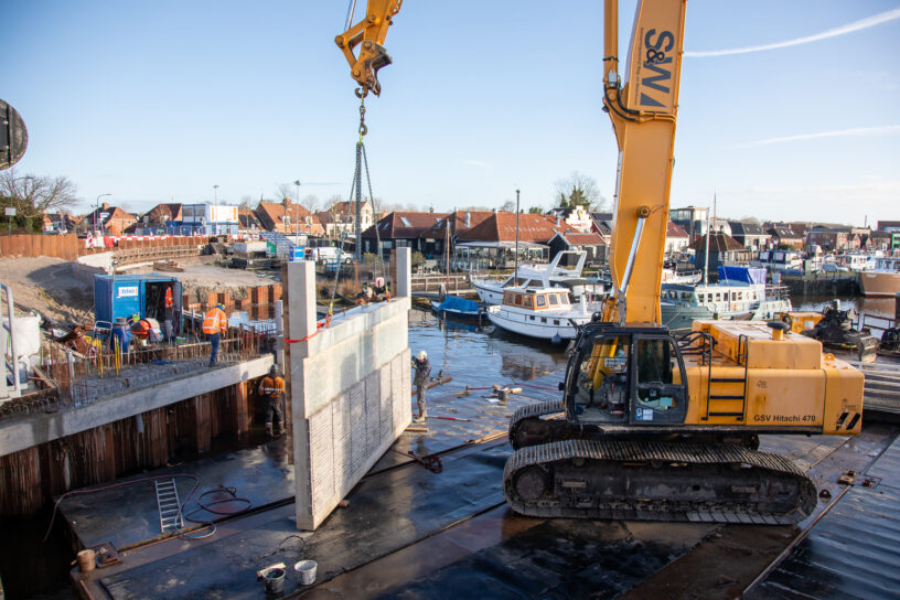 Het speciale beton is verwerkt in de hangelementen van de nieuwe fiets- voetgangersbrug in Zoutkamp over de Reitdiepsluis. Voor de grondwerende constructie aan de beide landzijden is ongeveer 70 m3 beton gebruikt voor de prefab hangelementen. Bij de proef is het cement vervangen door een minder milieubelastend bindmindel.