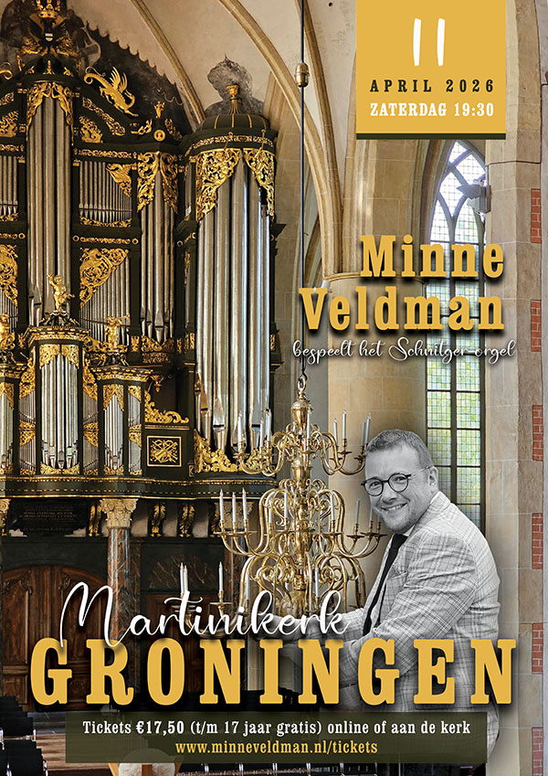 GRONINGEN – Op zaterdag 11 april 2026 geeft de bekende organist Minne Veldman een orgelconcert in de Martinikerk te Groningen. Vanaf 19.30 uur speelt hij een afwisselend en aanstekelijk programma op het beroemde Arp Schnitger-orgel.